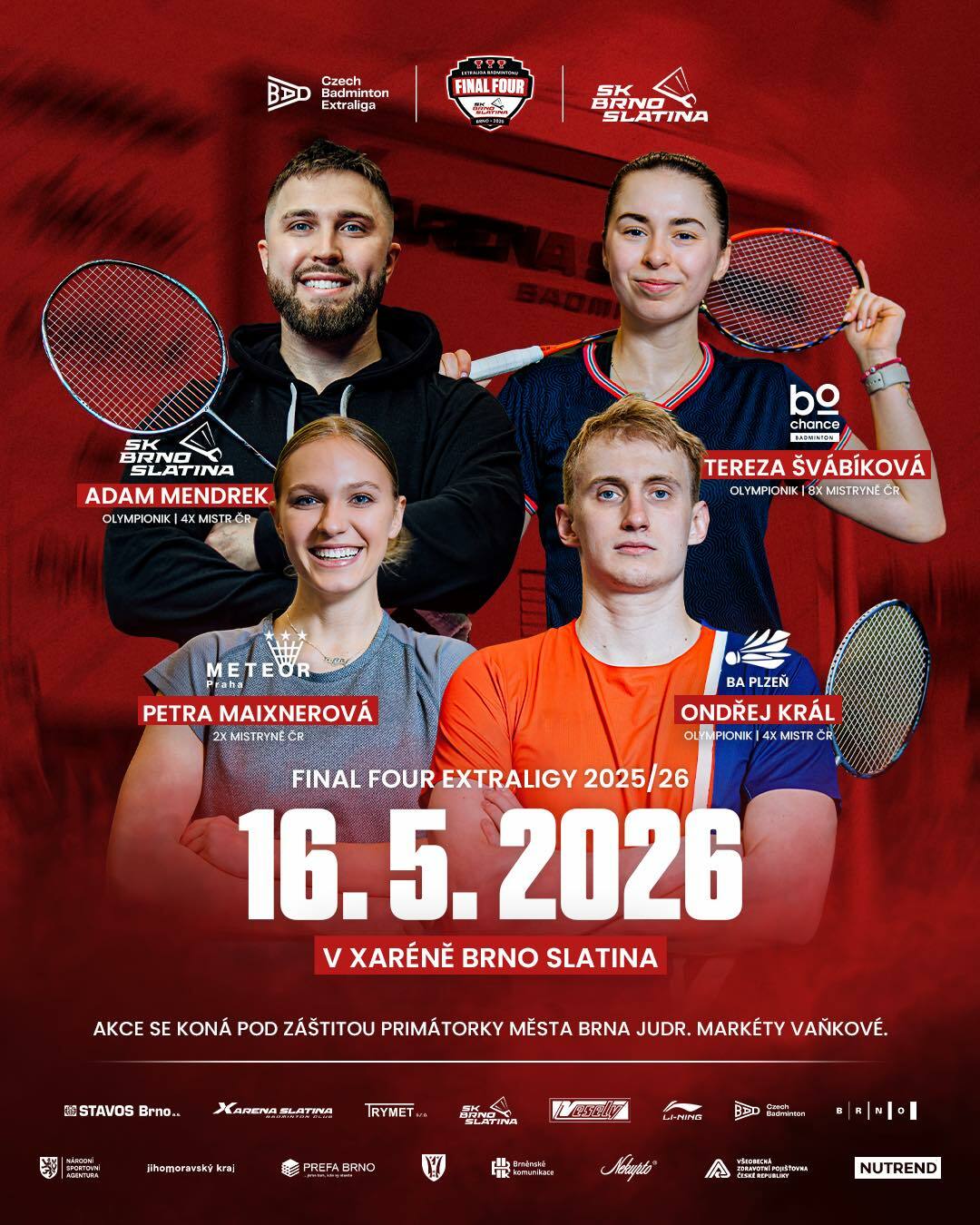 Zveme všechny fanoušky, aby si udělali čas a přijeli nás podpořit přímo do Brna – turnaj se hraje po celý den v sobotu a čekají nás špičkové zápasy českého klubového badmintonu.